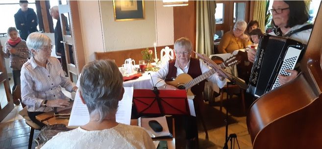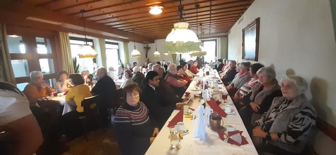 Bis auf den letzten Platz war das Nebenzimmer des Café Weigl beim Faschingskränzchen besetzt. Vorsitzende Angelika Vogl begrüßte die Gäste, sowie Pfarrer Kaufmann samt Kaplan. Sie wünschte ein paar Stund in lustiger und fröhlicher Rund. Verschiedene Einlagen brachten die Frauen zum Lachen, wobei Frau Rücker ganz spontan eine lustige Geschichte vortrug.
