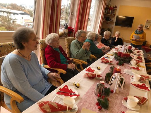 Im Advent bescherten ein paar Frauen aus dem Führungskreis den Mitgliedern, die im Seniorenheim wohnen, einen schönen und besinnlichen Nachmittag. Es wurden Geschichten und Gedichte über Engel und den Winter vorgetragen. Bei den Adventsliedern sangen die Seniorinnen kräftig mit. Im Anschluss klang der Nachmittag mit Kaffee und Plätzchen, die das Seniorenheim vorbereitet hatte, in gemütlicher Runde aus.