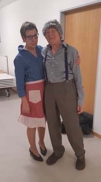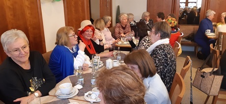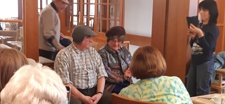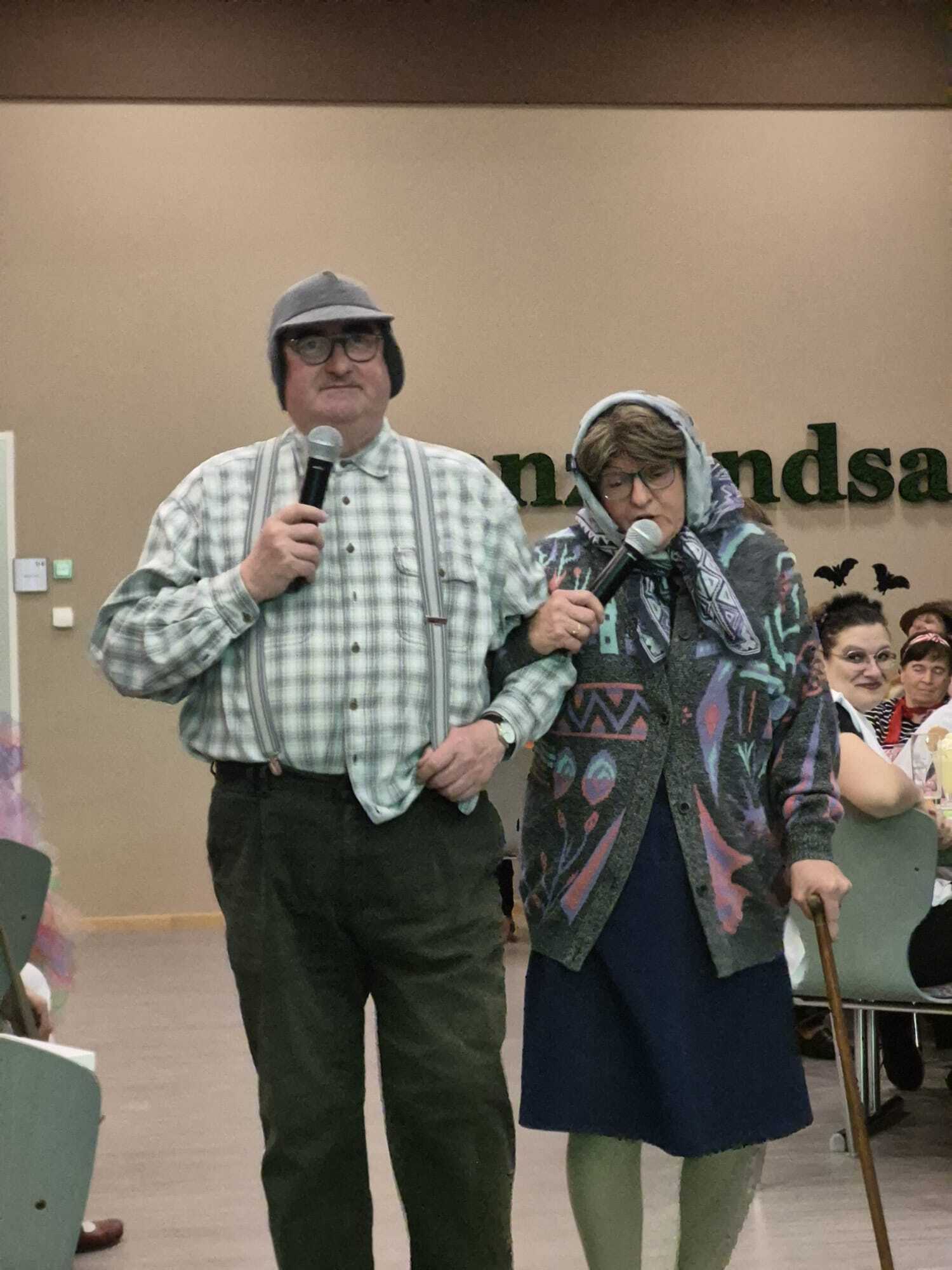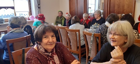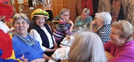 Über vierzig Frauen sind der Einladung zum Faschingskräzchen ins Café Weigl gefolgt. Geistlicher Beirat Stadtpfarrer Alfons Kaufmann und Vorstandsmitglied Gerlinde Lohrer spielten noch einmal den Sketch mit dem Bankerl.